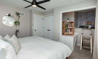 Space offers: 1 king bedroom with a unique reading nook, 1 queen bedroom, and 1 full bath. Easy remote check-in with both driveway parking and free street parking. Internet is 175 mbpsAbout pets:No pets allowed.About checkOut:Check out before 11:00 AM.About children:Children allowed: ages 0-17.About checkIn:Check in after 3:00 PM.About smoking:Smoking is not permitted.About minBookingAge:Minimum age to rent: 18.About events:No events allowed.