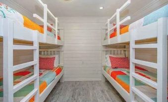 4 bedrooms: 3 bunk beds 1 sofa bed 1 queen bed and 1 king bed