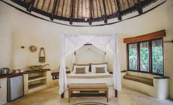 It was the worst experience ever. The first night the rain water got in the room, there were rats and bats in the roof and the were two spiders and the there were nobody answering. Finally the next day the change the room for other with the grass height and snake skin. This was a really bad experience.