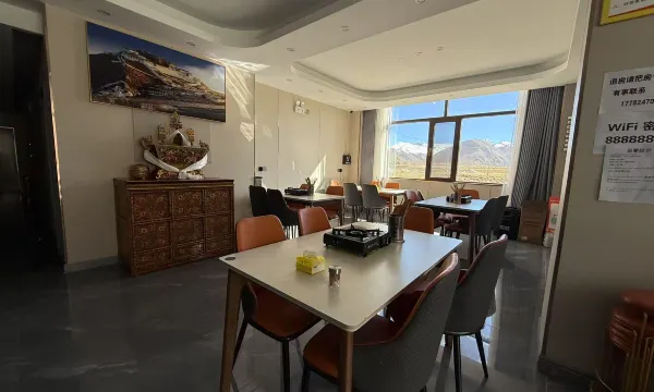 距離珠峯大本營超級近的一家酒店,在房間裏還能看見珠峯,海拔衹有4300,沒有感覺不舒服,交通非常方便,老闆可以幫忙聯繫景區的大巴車,在酒店門口就能直接上車,老闆還熱情的幫我做了咖啡哦,非常好喝,晚上和很多認識的新朋友一起去看星空,還吃了非常正宗的氂牛肉自助火鍋,牛肉蔬菜都不限量,80塊錢一個人非常划算!