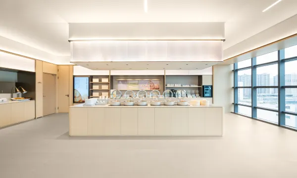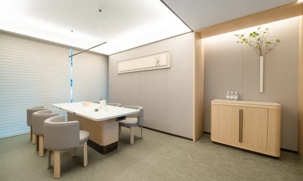 Entering the hotel, the fragrance of Zen tea is slowly refreshing, and the hazy freehand atmosphere allows guests to relax at once and retumto the most relaxed state, Siting down to serve tea is the way of hospitality for relatives and friends throughout the season. The whole seasonselects good tea from the source and matches it with ancient handmade relreshments to meet the needs of quests for temporary ofice,business and leisure, so that more people can enjoy the beauty of the present in a cup of tea.
