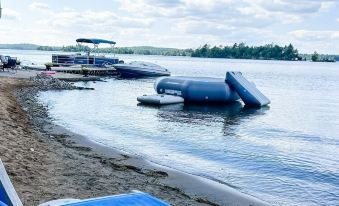 Directly overlooking Stoney Lake, this cozy one-bedroom lakeside suite features a cozy living room with lovely brook stone, wood burning fireplace, , hardwood floors, area carpet, modern furnishings, and extends to a small, open-concept kitchen area. There is an Apple TV, refrigerator, stove, microwave, coffee maker, kettle, toaster in the suite. Also dishes, glassware, pots, pans, utensils, dishcloths & towels, dish soap provided. There is access to a propane BBQ.
