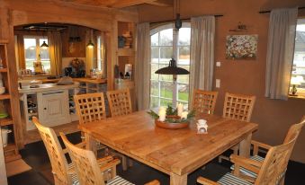 Dranske, district Lancken. The in the typical country style equipped holiday house (constructed in 2012) is located single standing, in a holiday home area and In has peaceful and sunny location. View from the property to the sea. Access is via a side street (paved). Parking (for 4 cars) in carport and on the property. Purchase 3 km, restaurant 3 km, center 3 km. Pharmacy in Altenkirchen 6 km. Doctor in Dranske 3 km. Indoor pool in Sagard 29.6 km. Railway station in Sassnitz 36 km. Bank in Wiek 3 km, main road 1000 m. Children's playground 500 m. About pets:Pets allowed: dogs (limit 1 total).Ein Hund kostet 10,00 €pro Nacht.About checkOut:Check out before 11:00 AM.About children:Children allowed: ages 0-17.About checkIn:Check in after 11:30 AM.About smoking:Smoking is not permitted.About minBookingAge:Minimum age to rent: 25.About events:No events allowed.