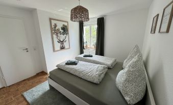 This 33sqm apartment with two rooms on the green outskirts of historic Dresden near to Radebeul offers a bedroom with king-size bed, living room sofa bed, brand new bathroom with shower bath and a fully equipped kitchen. It is ideal for up to 3 adults or 2 adults and 2 children. Perfect for your Dresden and Radebeul experience. There is a dining table, WiFi, washing machine, coffee machine and more - so you have everything you need for maximum comfort and minimum stress.About pets:No pets allowed, service animals permitted.Haustiere nur nach Voranfrage!.About checkOut:Check out before 10:00 AM.About children:Children allowed: ages 0-17.About checkIn:Check in after 4:00 PM.About smoking:Smoking is not permitted.About events:No events allowed.