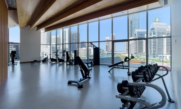During your down time, go for a swim in the outdoor pool. The gym provides a place for guests to work out.