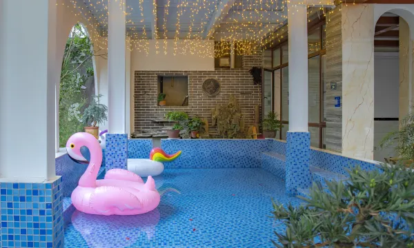 停車在民宿附近不遠(應該在百米左右),不想走老闆也可以騎着小三輪拉過來。整體裝修很有特色,入門處有個小型泳池(涼水,夏天比較舒服),水深在70_80左右,在一個小鎮上,附近購物也比較方便。房間衞生乾淨整潔而且每個房型特色不一樣,此次到來補了差價選擇了洞穴私湯房型,下次可以來體驗一下其他房型(不是每個房間都有私湯,標記有的好像才有)洗漱用品完善也不錯,老闆服務態度非常好,有事必應!還可以送我們到青城山!非常滿意的一次旅途!!