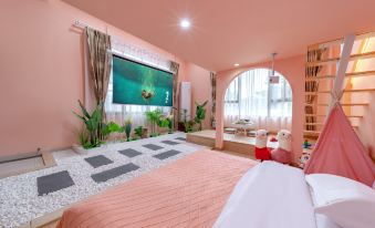 Fengwu Worldly Cave Private Hot Spring Queen Bed Movie Room