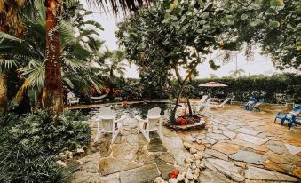 The Tiki Hut unit is privately located on the property, plenty of space for 5 guest, 2 bedroom, upper bedroom has a half bath , queen bed and a full bed , toilet and sink and is accessible by spiral staircase, lower bedroom bathroom has a King bed bathroom has a walk in shower with stack washer and dryer. Spacious living area with a fully functional kitchen. The property is an acre of lush tropical plants. Conveniently located to the downtown and beach, we allow a dog 35 lbs or less Pets over 35 lbs will require owners approval About pets:Pets allowed: dogs less than 50 lbs per pet (limit one pet total).About checkOut:Check out before 11:00 AM.About children:Children allowed: ages 0-17.About checkIn:Check in after 3:00 PM.About smoking:Smoking is not permitted.About minBookingAge:Minimum age to rent: 22.About events:No events allowed.