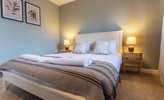 The ground floor features a spacious open-plan lounge and kitchen-dining area, fully equipped with everything you need for your stay, including utensils, a kettle, toaster, microwave, dishwasher, fridge/freezer, and a washer-dryer. The property also includes a smart TV and high-speed broadband throughout.