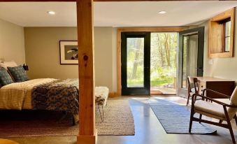 Guests have full access to and privacy in the Modern Barn and access to the pond, dock and 18 acres of trails on the property. Access to the front yard is restricted to people in our farmhouse which sits on the property (if anyone is in the farmhouse). We (the owners) may be in the farmhouse when you rent the carriage house, but the two houses are distinct and private.About pets:No pets allowed.About checkOut:Check out before 11:00 AM.About children:Children allowed: ages 0-17.About customRules:No parties or loud noise..Please send a form of government ID when you book..About checkIn:Check in after 3:00 PM.About smoking:Smoking is not permitted.About minBookingAge:Minimum age to rent: 21.About events:No events allowed.