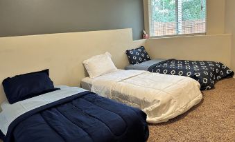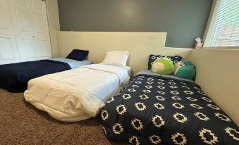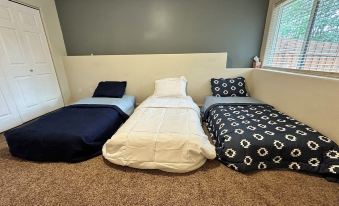3 bedrooms: 3 single beds 1 queen bed and 1 king bed