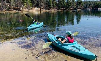 Fun stay here with 6 adults and 4 kids for a family vacation! We loved the beach - the lake was much warmer than nearby Lake Michigan, and we really enjoyed the canoe and kayaks! The swim platform was a huge hit with the kids! Todd, the property manager, was very responsive and helpful when we had an issue with the oven our first night. The listing is a little deceptive; the beach is a walk down a steep hill, and some of our group with mobility challenges had trouble with the path. The house was lovely inside - clearly recently updated, with a great kitchen and new appliances. However, the kitchen was missing a few simple but important tools: pot holders, measuring cups/spoons, can opener, etc., which made cooking difficult. The living area was very large, but didn't have enough seating for a house that sleeps 12. The two couches (which were not very comfortable) only fit 6; more couches/chairs would be great. The bedrooms were comfortable, but the carpets had an odd musty smell, and they were also missing some simple items: e.g., trash cans & mirrors. There were 4 exterior doors, none of which had mats... with a beach, wood-chip path from the beach, and sand/gravel driveway, you can imagine how much yuck was tracked in by 10 pairs of feet, even though we were taking our shoes off at the door. Entry mats seem like a simple easy addition! On the whole, the house was beautiful, and a few simple additions would make it really exceptional.