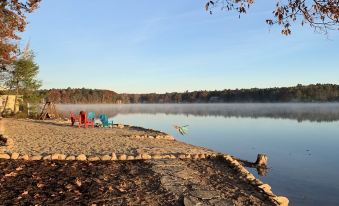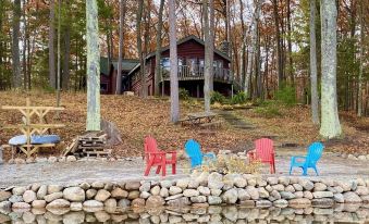 Wonderful cabin, with log structure charm and coziness. Beautiful lakefront with chairs to sit and watch the sunrise, and the mist rising off the surface of the lake. Beautiful time of year to be there with autumn colors emerging. Very clean rooms and facilities. Pontoon boat was available but we didn't use it. Wished we could have stayed longer. Hope to return some day.