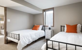 Inside, you'll find a spacious, open-concept layout with stylish modern touches. The living area is warm and inviting, offering plenty of seating and a Smart Roku TV for cozy movie nights. The downstairs family room provides even more space to spread out, complete with two pull-out couches for extra guests. With four well-appointed bedrooms, everyone will have a comfortable place to rest. The primary suite features a king-size bed, while two additional bedrooms each offer plush queen beds. The fourth bedroom, with two twin beds, is perfect for kids or friends. Two full bathrooms ensure plenty of space, with the main bath stocked with plush towels, makeup towels, shampoo, conditioner, and body wash.