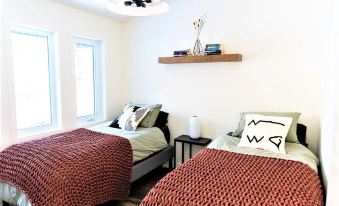 I found this gem on VRBO and it did not disappoint at all! Sensational new property boasting a wide open concept. Super clean and smelling brand-spanking new. The outside deck was phenomenal! Loads of space and quite private. Our only suggestion is more comfortable outdoor seating and perhaps a table to enjoy an outdoor meal.