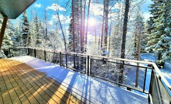 Beautiful property with great forest views. We spent a lot of time on the raised deck. Close to campgrounds & town. The kitchen is fully stocked with high quality appliances, perfect for preparing meals. The open concept layout with large island & windows overlooking the forest is hard to beat. Would love to stay again in the future!