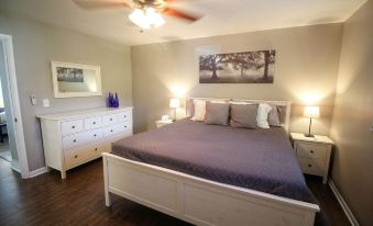 There are three bedrooms; a master suite with a king bed, walk-in closet and attached bathroom; and two guest bedrooms, one with queen bed and the other with a twin bed and bunk bed that share the second bathroom.