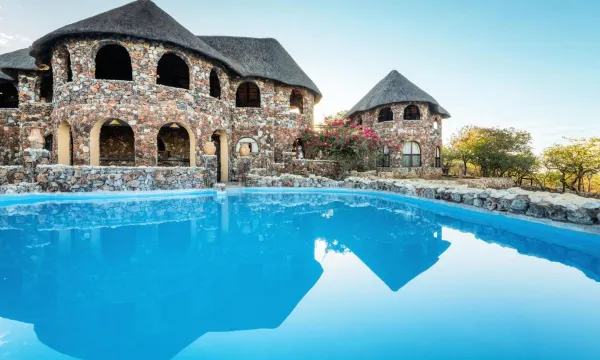 Location & Ambiance: The lodge is beautifully situated near Etosha National Park, offering stunning views of the surrounding nature, including wildlife sightings near the pool and terrace. The remote, natural setting is ideal for relaxation and glamping experiences.