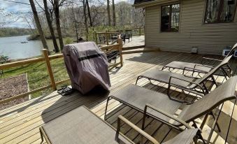 Located in the heart of central Illinois, the Redbud Cottage at Lake Sara is a great destination for families or friends, or a perfect stopover for a trip through the Great Midwest. With your own swimming beach, a floating dock to play on, a beautiful wood-burning fireplace, a dock for fishing, and a large deck for sitting in the sun, enjoy the peace and quiet of our little wooded cottage on the lake.