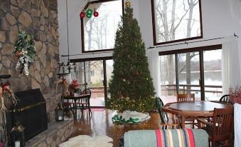 Inside, enjoy the separation of a master suite upstairs, as well as the two-and-a-half story, book-filled living room with its massive stone fireplace. You can burn local wood that you'll find stacked at your door. One of our favorite sports is sitting with a book in front of the fire--wine and s'mores are optional.