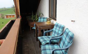 Sehr netter und freundlicher Empfang, besichtigen der Fewo. mit Balkon und Blick nach Süden wie in der Anfrage beschrieben. Natürlich passte auch das Wetter bestens, so konnten sich die Jungs im Garten bei den Spielgeräten mit den Hof Enkeln befreunden und sich nach unseren Tagesausflügen voll umfänglich bei den Spielgeräten bis Spät austoben.Natürlich durften wir alle zu den Tieren ( Katzen, Ziegen, Hasen, Hühner sowie nach Absprache zu den Pferden zum streicheln, striegeln und, füttern) auf dem Hof. Alles in allem Super!
