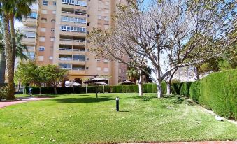 Playa Muchavista: It has an open pool and a heated pool. Very large, child friendly apartment block "Bitacoras", 18 storeys. In the resort, 150 m from the sea, 150 m from the beach. For shared use: property (fenced) with lawn, swimming pool, indoor pool heated (seasonal availability: 15.Jun. - 15.Sep. and 01.Jan. - 31.Dec.). Shower/WC in the pool area, outdoor shower, patio, children's playground. In the complex: bar, fitness room, lift. Parking on the premises. Supermarket 100 m, restaurant 50 m, bar 100 m, tram "Benidorm-Campello-ALicante" 150 m, bus stop "Mongomit – Fabraquer" 200 m, sandy beach "Muchavista" 150 m. Nearby attractions: Terra Mitica Benidorm 31 km, Acualandia Benidorm 33 km, Alicante 12 km, Aeropuerto Alicante 25 km, Elche 42 km, Valencia 172 km. Please note: baby equipment on request. The owner does not accept any youth groups. Neighbourhood highly sensitive to noise. Quietness and good behaviour expected. "Bitacoras", 3-room apartment 75 m2. Object suitable for 5 adults. Spacious and bright, simple and practical furnishings: living/dining room 21 m2 with air conditioning, fan and forced-air heating. Exit to the loggia. 1 room 9 m2 with 2 beds (90 cm, length 200 cm), air conditioning, fan and forced-air heating. 1 room 9 m2 with 1 french bed (150 cm, length 200 cm), shower/WC, air conditioning, fan and forced-air heating. Kitchen 8 m2 (4 ceramic glass hob hotplates, toaster, kettle, microwave, freezer, electric coffee machine, Capsules for coffee machine (Dolce Gusto) extra). Shower/WC. Terrace 11 m2. Terrace furniture. View of the sea, the garden and the countryside. Facilities: washing machine, iron. Internet (WiFi, free). Parking space n 58 (-2), height 230 cm. Suitable for families. Excellent WIFI signal for teleworking. Possibility of delivery of keys in the apartment from 4:00 p.m. to 6:00 p.m. with an extra cost of €30.00. Works in common areas that do not affect the pool. VT-489279-A