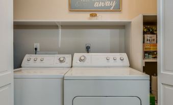 Smart TVs in each bedroom and 1-55" TV in Living Room. Large Back yard. Kitchen has dinner and silverware for 8, Cookie Sheets, Baking Pans, Storage containers, cooking utensils, and large Freezer/Refrigerator.
