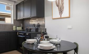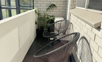 This apartment is up some stairs, but sits among the trees, with every room layered in stylish details from the linens and decor to the new kitchen and living room fit out, all new appliances and electronics. Relax on the balcony and look out across the evening sky.About pets:No pets allowed.About checkOut:Check out before 10:00 AM.About children:Children allowed: ages 0-17.About customRules:Quiet hours 11pm - 7am.About checkIn:Check in after 3:00 PM.About smoking:Smoking is not permitted.About events:No events allowed.