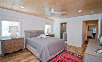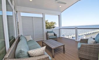 Each of the four bedrooms is a sanctuary in itself, offering plush bedding, ample storage, and private access to either the mesmerizing sound-front or lush surroundings. The 4.5 bathrooms are sleek and stylish, providing the utmost convenience for all guests.