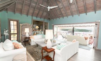 The impeccably styled lounge flows effortlessly through foldable doors into a shaded verandah overlooking the Caribbean Sea, replete with comfortable sofas and al fresco dining area. The deluxe master suite and additional bedroom have en-suite bathrooms with private garden showers.