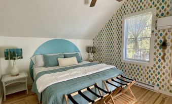Arbor Cottage LOFT is nestled in the heart of the Village of Ephraim on the shores of Eagle Harbor. The "LOFT" is upstairs/attic of the original/historic cottage (circa 1853) and has been lovingly remodeled into a charming Scandi-inspired LOFT w/ its own private entrance. The LOFT has west-facing views to savor unforgettable sunsets, island & bluff vistas. Enjoy 100' of private lakefront area to swim, kayak, or just relax with a glass of wine and watch a fabulous sunset over Eagle Harbor!