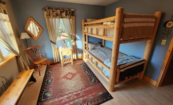Down the hall are bedrooms two and three with the bunk beds. The view outside from bedroom 2 is similar to the Master. Both bedrooms 2 and 3 have accessible closets. The closet in the master bedroom is locked with our stuff, however, the hall closet is unlocked for your use. Note the laundry chute next to the stairs which goes to the basement!