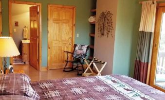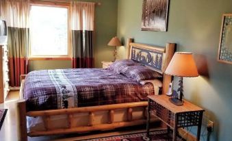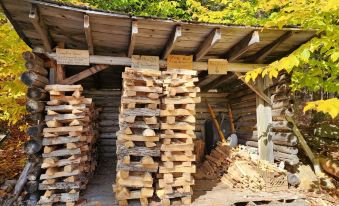 You walk up the stairs into the kitchen/dining/sitting area with the wood stove (notice the supply of batteries on the wall at the top of the stairs). As you can see by the pictures, there is a full kitchen and a table that has wings on both sides to make it larger. Play chess in the sitting area with a soothing fire burning in the wood stove. From October to April there will be wood stocked next to the stove, on the screened porch and in the lean-to in the back for your use. Detailed instructions for stove use are included in the manual we will email to you prior to your stay and also in the binder on the counter. Check out all the drawers and cabinets in the kitchen, there's a ton of different supplies, dishes, glasses, pots, pans and gadgets. Wine glasses are hanging next to the refrigerator. We do have a drip coffee maker with plenty of filters and 1 lb of sealed coffee for you. There are jars of bulk sugar, salt, confectionery sugar and flour. Salt, pepper, olive oil, balsamic vinegar, and a good variety of spices are included if you forget something. From time-to-time there may be unexpired open condiments in the refrigerator for your use. You should plan on bringing your own.
