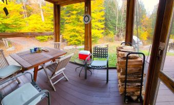 The screen porch is adjacent to the kitchen and leads to the deck with a large teak table and many chairs. Unless there is snow on the ground, you may want to relax around a bonfire in the fire pit, make s'mores and perhaps stare at the night sky trying to identify satellites circling the earth. It so dark here, you will see tons once your eyes adjust!