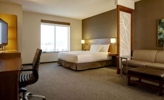 Guest rooms feature contemporary decor with stylish furnishings including the Hyatt Grand beds, state-of-the-art media and work center with a high-definition 42 inch flat panel television that easily integrates with laptops, a comfortable cozy corner L-shaped sofa-sleeper, wet/dry bar and bathroom vanity with granite counter tops. Free breakfast for all guests. Our breakfast includes premium ingredients, cage-free eggs, and gional chef-inspired dishes.
