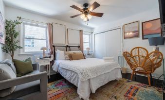 Relax with the whole family or explore the city with friends at this peaceful and spacious 6 bedroom duplex conversion. Boasting two full baths, 2 half baths, 2 full kitchens, & two separate living and dining areas— tucked within a quiet, tree-lined street. Includes off street parking spaces, along with enough unmetered street parking.