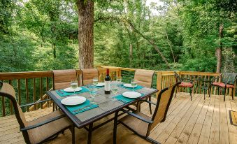 Whip up tasty dishes in the modern and fully stocked kitchen, detailed with stainless steel appliances and granite countertops. Enjoy ample counter space for all of your cooking needs. When your delicious creations are ready, dine together at the wooden table with seating for up to ten or outside on the deck overlooking the lush wooded forest.