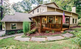 Blackberry Lodge is a hidden gem only 20 minutes from downtown Asheville. You'll experience a relaxing mountain vacation in this three-level 5 bedroom, 5.5 bath deluxe private home that features a sunken hot tub, an open living area with an additional family and billiard room, ping pong, foosball, a large solo stove fire-pit, and an EV charger! Blackberry Lodge is a private and peaceful sanctuary, surrounded by large oak trees, rhododendrons, and mountain laurels with songbirds everywhere. Blackberry Lodge is also professionally managed a local team with years of experience and passion for providing the ultimate guest experience.