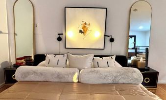 Experience luxurious living in this sophisticated modern home, centrally located and just 5 Minutes from Downtown St. Louis with an ARCH VIEW! Enjoy FREE wine, water & continental breakfast: with 2 levels of expansive outdoor decks and a lower level indoor dry sauna, fitness room and cozy putting green with clubs and balls. This 4 bed sanctuary boasts memory foam mattresses, a 72 inch crescent soaker tub, pampering multi-function shower panels, a 14ft cocktail pool/jacuzzi that can be heated upon request & 2 fireplaces. Premium outdoor sofa, dining chairs and bbq grill. Ask about our add-on premium services like: on-site car rental, charcuterie board, party decor, massage and nail care, mid-stay cleaning and airport pickup/drop off service.