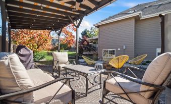 Just 20 minutes from downtown, our sunny daylight basement has recently been remodeled for you! Enter through your own door with a key-pad lock. A hot tub and gazebo are right outside the door, with patio furniture, a gas fire pit, and a BBQ grill ready to be enjoyed. The interior space is bright and sparkling clean! The kitchen opens into the family room with a smart TV. Just around the corner are two bed rooms and a newly remodeled bathroom. Now offering outdoor pool rental and electric bikes!