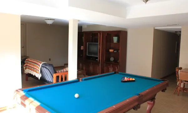 Beautiful stone lodge with 3 bedrooms and 2 baths upstairs and 1 bedroom and 1 bath downstairs. The house was completely remodeled in 2012/2013. Amenities include hardwood and tile floors, granite counter tops, gas log fireplaces, large covered porches on front and back, pool table in finished basement. The area is secluded with beautiful mountain views, yet within walking distance of many area attractions. Sleeping accommodations include a master bedroom with king bed and master bath, two bedrooms with twin beds upstairs share a second bath. A bedroom with 4 bunk beds and a full bath is located in the lower level. The living room has a queen size pull out couch and the basement has a queen size futon. The property contains a stone fire pit and horseshoe court. Many of the restaurants and pubs in town are within a 20 to 30 minute walking distance. The national park boundary and New River Gorge bridge are less than 2 miles away. About pets:No pets allowed.About checkOut:Check out before 10:00 AM.About children:Children allowed: ages 0-17.About checkIn:Check in after 3:00 PM.About smoking:Smoking is not permitted.About events:No events allowed.