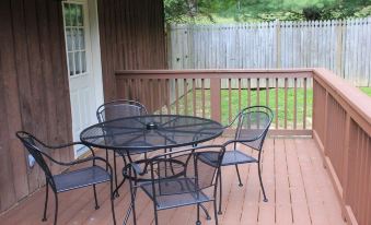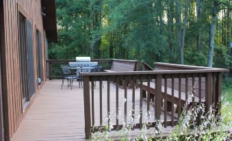 Luxury mountain chalet with 4 bedrooms and 4 baths on secluded 25 acre property close to downtown Fayetteville (1.5 miles) and New River Gorge Bridge and National Park (2 miles). The house was remodeled in early 2014 and was opened for vacation rentals beginning in May, 2014. The Sugar Creek Chalet is 1/4 mile from the Ramsey Mountain Lodge (VRBO 452740), both are owned by Bill and Sally Wells. We strive to deliver the highest quality vacation experience and encourage you to read our guest reviews. Amenities include hardwood and tile floors, granite countertops, newly remodeled kitchen and bathrooms, gas log fireplace, screened porch and large deck plus a sandstone fire ring with masonry sitting walls. The house is pet friendly and has a fenced in backyard. Sleeping accommodations include a first floor master bedroom with a queen size bed and master bath. A second full bath is also located on the first floor. Two bedrooms and a loft are found on the second floor. One bedroom has 3 single beds. The second bedroom has a full size bed and the loft has a full size futon. The basement features a bedroom with 4 bunk beds, a family room with a queen size convertible couch and a full bath. The family room includes a game table and foosball table. The Sugar Creek Chalet will sleep 10 to 15 people and large groups up to 28 people can be accommodated by renting both the Sugar Creek Chalet and the Ramsey Mountain Lodge (VRBO #452740)About pets:Pets allowed.Pet friendly, fenced in backyard.About checkOut:Check out before 10:00 AM.About children:Children allowed: ages 0-17.About checkIn:Check in after 3:00 PM.About smoking:Smoking is not permitted.About minBookingAge:Minimum age to rent: 25.About events:No events allowed.