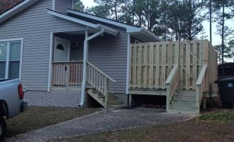 Consider this townhome your home away from home while you visit Fayetteville. This charming and enchanting property offers a superb stay for up to 6 guests. With 2 bedrooms, including one with 1 full bed and another with a 1 twin bed + trundle bed combo, you'll have a cozy and comfortable space to relax and work. The 2 bathrooms are equipped with full amenities like a hair dryer, toiletries, and a bathtub/shower combo in each. Additionally, there is an additional sleeping space in the form of a living room with 1 sofa bed and 2 futon couches. Enjoy full kitchen and dining room along with a business corner, washer/dryer for laundry and outdoor enclosed porch and backyard. Whether you're exploring the city or unwinding indoors, this townhome has everything you need. We look forward to hosting you at our place. It's the ease of the beach without the trouble of the sand.About pets:No pets allowed.About checkOut:Check out before 11:00 AM.About children:Children allowed: ages 0-17.About checkIn:Check in after 4:00 PM.About smoking:Smoking is not permitted.About minBookingAge:Minimum age to rent: 25.About events:No events allowed.