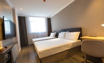 定了兩間高級大床房。總的看:酒店較新,設施完好,地處步行街,睡床舒服,室温適宜,春節街上人不多,停車不難。其它感受:網上定的是高級大床房,但與攜程圖片比對,兩房間與“高級大床房A”相同,不知是網絡錯誤還是前台服務疏忽;床品不整齊,進門感覺有人剛坐過;房間隔音一般。