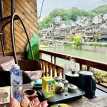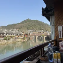 The boss was very nice and upgraded my room on the third floor. The room has a view of Tuojiang River. The view is great. I like the balcony very much. He also gave me afternoon tea and a map. I really like it 👍