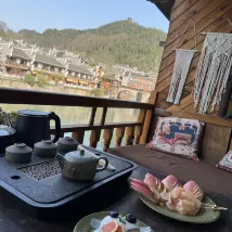 It was a wonderful experience. The hotel's location is great for photos and check-in. The 1.8-meter-tall bed room is perfect for families, and couples can check in. The hostess was also very kind, providing thoughtful service. She even gave us local specialties and celebrity cards when we left. There's also a cute kitten in the hotel, which the children loved. Sitting on the balcony and enjoying the riverside scenery is a very relaxing experience. I highly recommend visiting Fenghuang Ancient Town and experiencing its beauty...