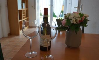 After your excursion, our cozy apartment invites you to linger in front of the fireplace or on the adjacent terrace. Our apartment offers you the comfort of a fully equipped kitchenette and a spacious bathroom with bathtub. The king-size bed can accommodate two people.