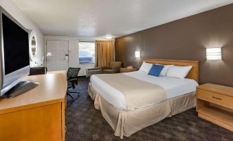 Amenities include onsite coin operated laundry facilities- complimentary wireless internet access- complimentary large vehicle parking- and an outdoor pool. Guest rooms feature flat screen HDTV- mini refrigerator- and microwave. Rooms with kitchenette- stove top facilities and dining area are also available. Pets are welcome for a nominal fee.