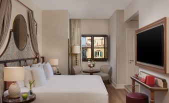 The NH Collection Firenze Porta Rossa hotel is thought to be the oldest hotel in Italy and dates back to the 13th century. This extraordinary hotel features marvelous frescos and is set in the heart of historic Florence. Steps away, you will find the famous Uffizi Gallery, the breathtaking Duomo, and the Arno River with the Ponte Vecchio. High-end boutiques and fine dining are also close by, on the elegant Via Tornabuoni. Our 70 rooms combine modern design with classic elegance. Each room has ivory-colored furniture, natural wood, and warm tones, while many feature stunning frescos and restored 19th century pieces. There's also a pillow menu available. Our Torre Monalda Suite is truly unique as it is set in the historic tower and has panoramic views over the city. The Presidential Suite is ideal for an intimate celebration or event. Our fine breakfast is served in a beautiful traditional room and offers a large variety of hot and cold dishes, along with freshly pressed juices and brewed Italian coffee. For a light meal accompanied by a cocktail or regional wine, head to Bar. Codice CIR: IT048017A1O9HCDONC