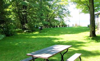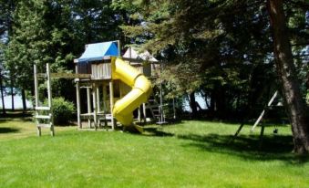 This a family friendly property with 165 feet of shoreline, a sandy beach play areas, 2 sun bathing rafts,2 kayaks, pedal boat, SUP, water mat,2 BBQ ( one propane -the other briquette), tennis court, an extensive play-swing set, bonfire pit, picnic tables, multiple seating areas to enjoy viewing the lake and sunsets, there are amenities for all ages.